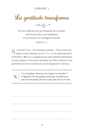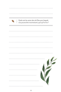 Conçu comme un journal spirituel, il propose des espaces pour noter ses pensées et ancrer concrètement sa foi dans l’amour et la fidélité de Dieu. Semaine après semaine, la gratitude devient un exercice transformant, qui nourrit une foi plus profonde et rayonnante.